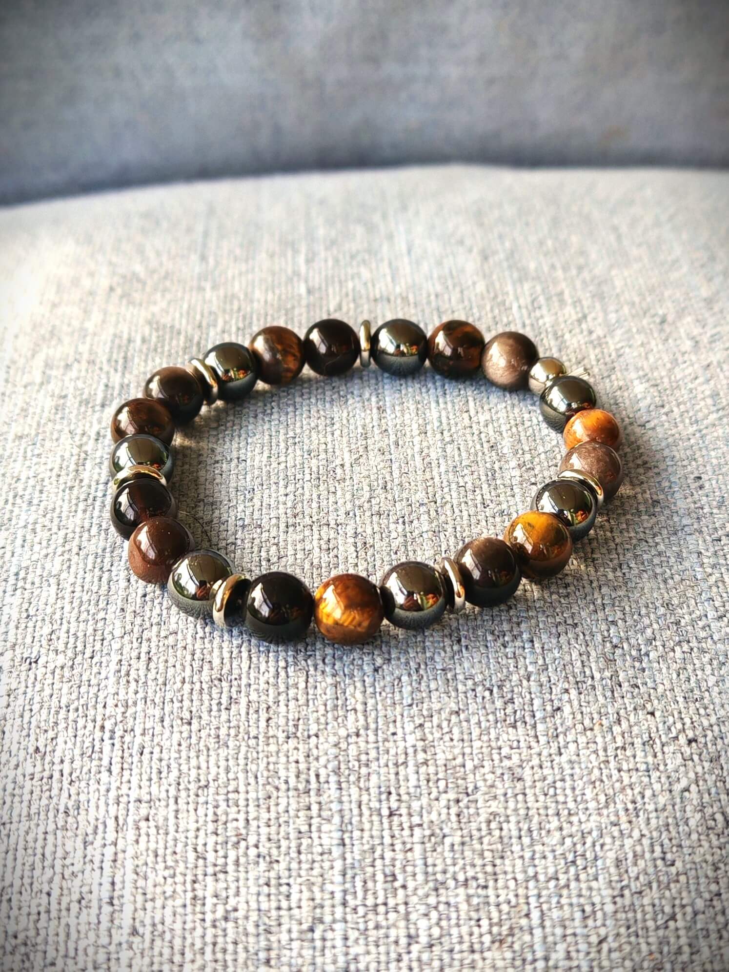 Le bracelet Triple Protection, composé d’hématite, d’œil de tigre et d’obsidienne, est un incontournable pour ceux qui recherchent un mélange parfait de force intérieure, ancrage et protection. Ces trois pierres, réputées pour leurs vertus énergétiques, s’unissent pour offrir un véritable bouclier énergétique et une sérénité au quotidien.